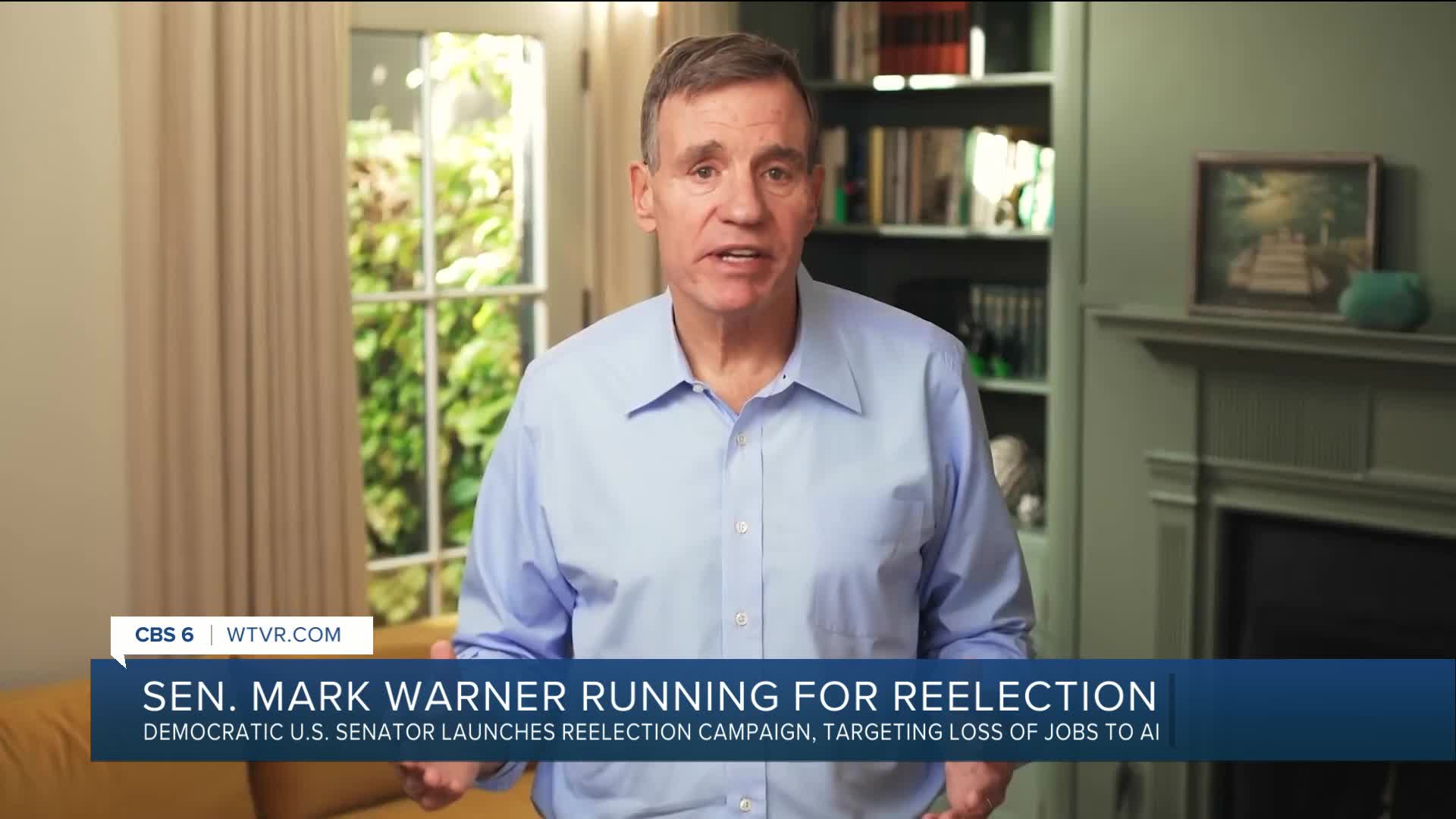 In a campaign announcement, the Virginia senator said he was running for reelection to rein in America's economic crisis, particularly regarding the impact of artificial intelligence on job displacement.