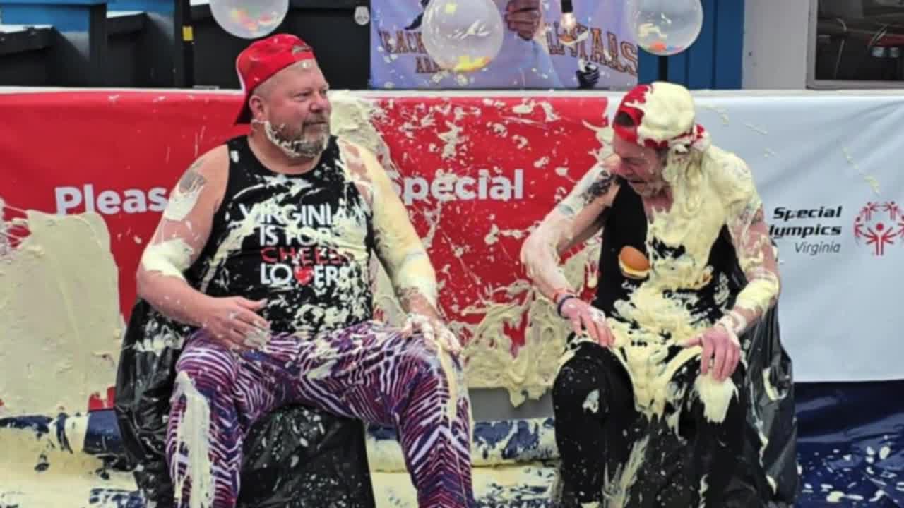 RICHMOND, Va. — Chesterfield Sheriff Karl Leonard and radio host Jeff Katz got covered in 50 pounds of mayonnaise to raise more than $10,000 for Special Olympics Virginia.
