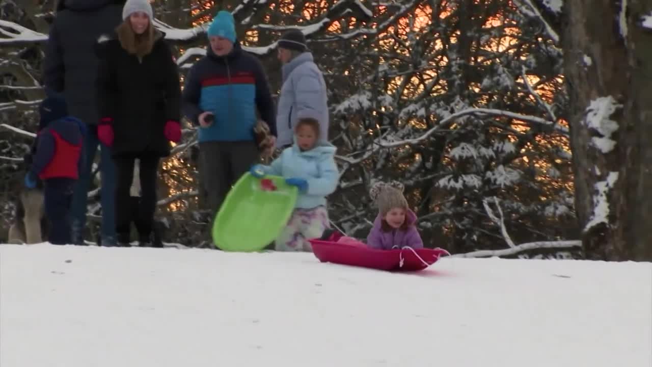 "We're very excited. We really hope we have the week off," said Lexi Kohstall, a James River High School student, while sledding with friend Delaney Olowiany.