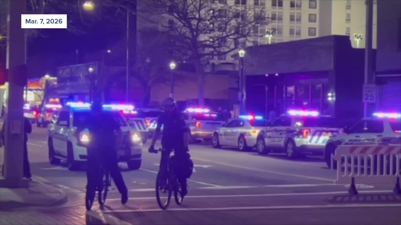 Police say their preliminary investigation indicates two men were shooting at each other when several other people were hit by the gunfire. Both suspects ran from the scene and have not been located.