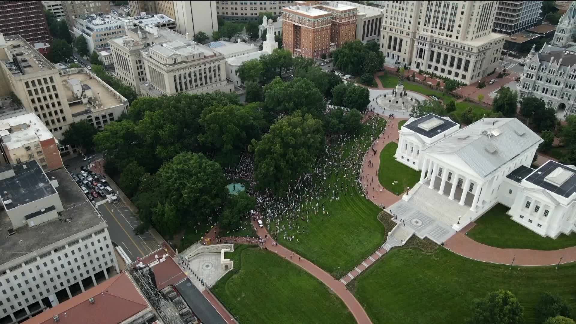 Video from the last protest in June showed thousands of participants moving through Richmond's downtown area along Broad Street before ending at Kanawha Plaza.