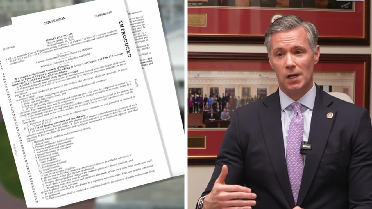 Sen. Glen Sturtevant (R-Colonial Heights), proposed the bill after working as a medical malpractice attorney handling nursing home cases. The legislation would strengthen state requirements for advanced medical provider visits beyond current federal mandates.