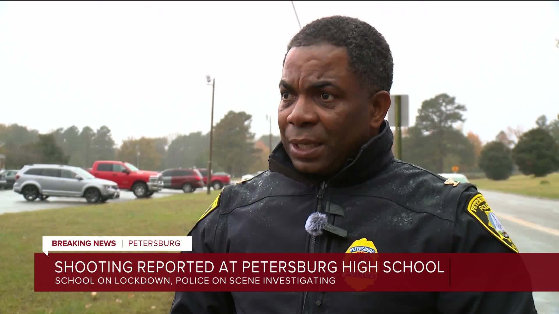 Petersburg Chief of Police Travis Christian tells CBS 6 they believe a car pulled up near the school and fired several rounds into the air around when the high school students were leaving for the day. Students were told to go back inside.