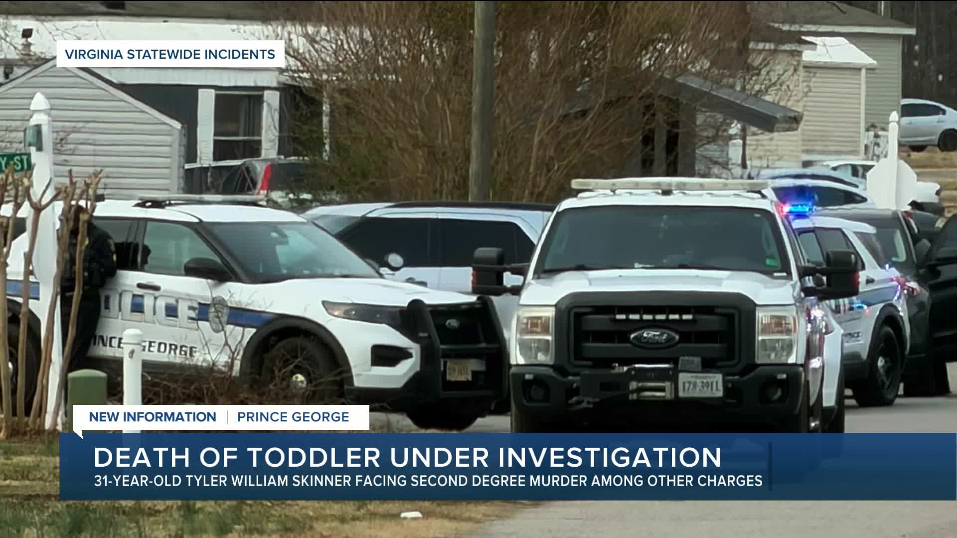 Tyler William Skinner, 31, was taken into custody Monday and charged with second-degree murder and felony abuse and neglect of a child in connection with the toddler's death.