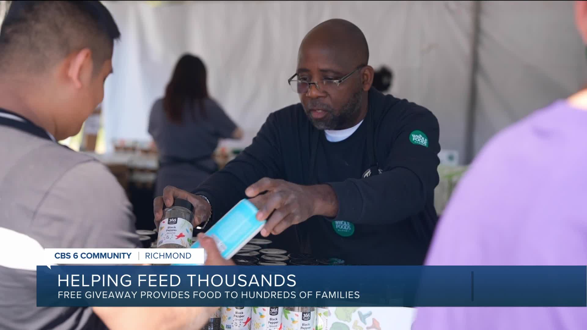 RICHMOND, Va. β Hundreds of families received free groceries during a community giveaway held at Richmond's Southside Community Center on Tuesday. The event was made possible through a partnership between Whole Foods and Community Access & Supportive Services (CAASS).