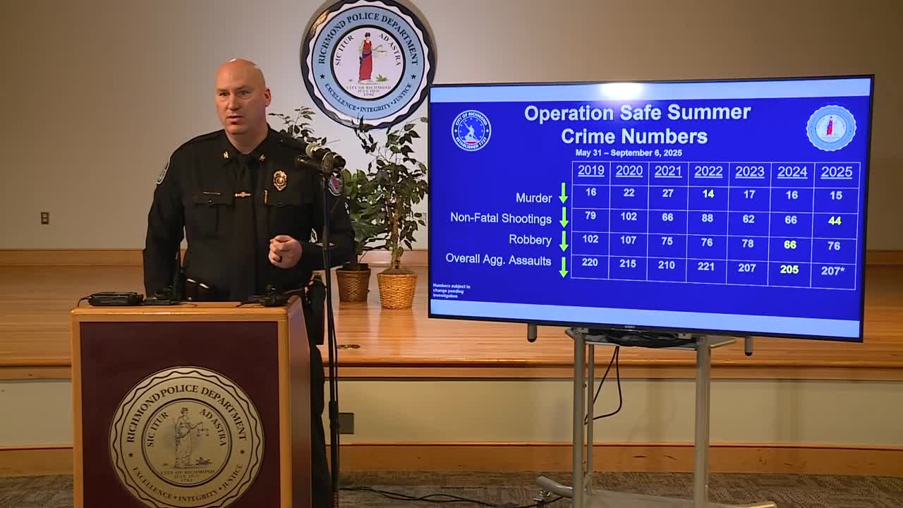 RICHMOND, Va. β Richmond Police Chief Rick Edwards announced significant decreases in non-fatal shootings during a news conference, highlighting a 33% reduction during Operation Safe Summer and a 16% decrease year-to-date compared to 2024.
