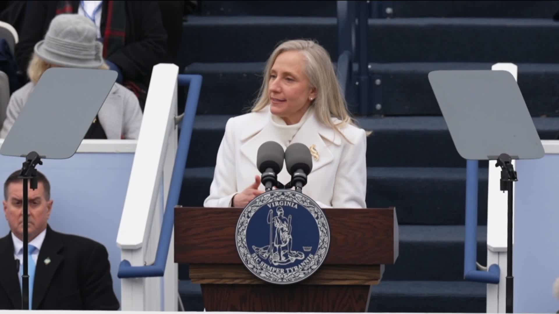 "Those who have devoted their lives to public service, you are worried about an administration that is gilding buildings while schools crumble, breaking the social safety net and sowing fear across our communities,” Spanberger said at her inauguration. “Betraying the values of who we are as Americans.”