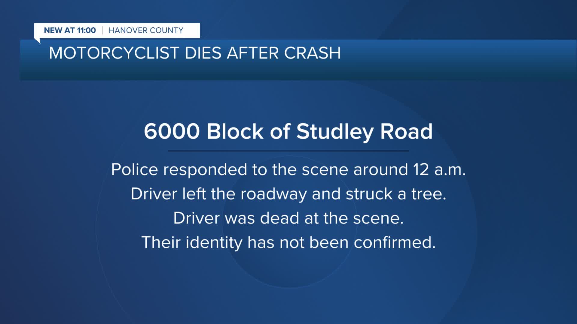 HANOVER COUNTY, Va. — The Hanover County Sheriff's Office has identified the motorcyclist killed in a crash over the weekend.