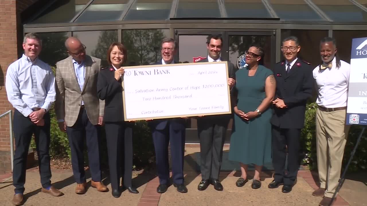 To offer more year-round support to Richmond's homeless population, the Salvation Army is developing the future Center of Hope. On Wednesday, Towne Bank gifted $200,000 toward the project.