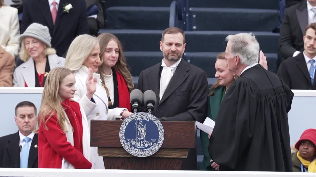 "I, Abigail Davis Spanberger, do solemnly swear... all the duties incumbent upon me as governor of the Commonwealth of Virginia... so, help me God," Spanberger said as she took the oath of office with her hand on the Bible and her family by her side on the steps of the state capitol.