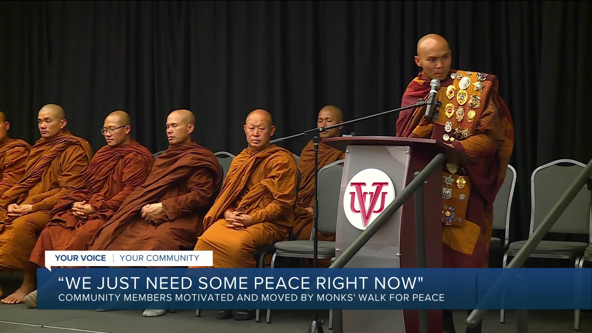 Watch: Thousands gather to witness monks on Walk for Peace in Richmond