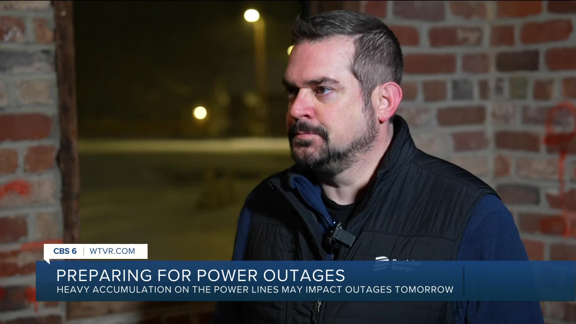 "With the lines, it's a couple things. It's wind, heavy wind, or getting a melt and a refreeze. So you get a heavy accumulation on the lines and if we were to see any serious accumulation on the lines, or tree limbs, nearby tree limbs that fall and break, that could also cause problems. So we are, you know, fully prepared for the worst, hoping for the best, but it's going to be a very cold 24 hours coming up," they said.
