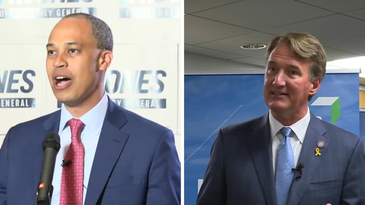Youngkin again addressed the text messages sent by Jones, the Democratic nominee for attorney general, to Delegate Carrie Coyner three years ago. In the texts, Jones described a thought game in which he said he'd save two bullets for then House Speaker Todd Gilbert and then wished harm upon Gilbert's children.