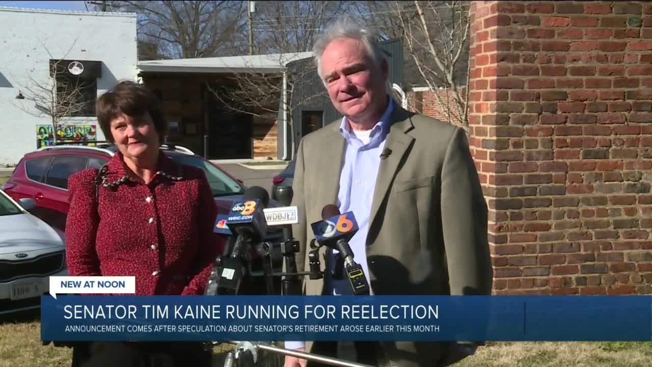 Speaking with his wife, Anne Holton, by his side, Kaine said President Joe Biden did not personally press him to seek a third term, but other Senate Democratic colleagues had encouraged him to run.