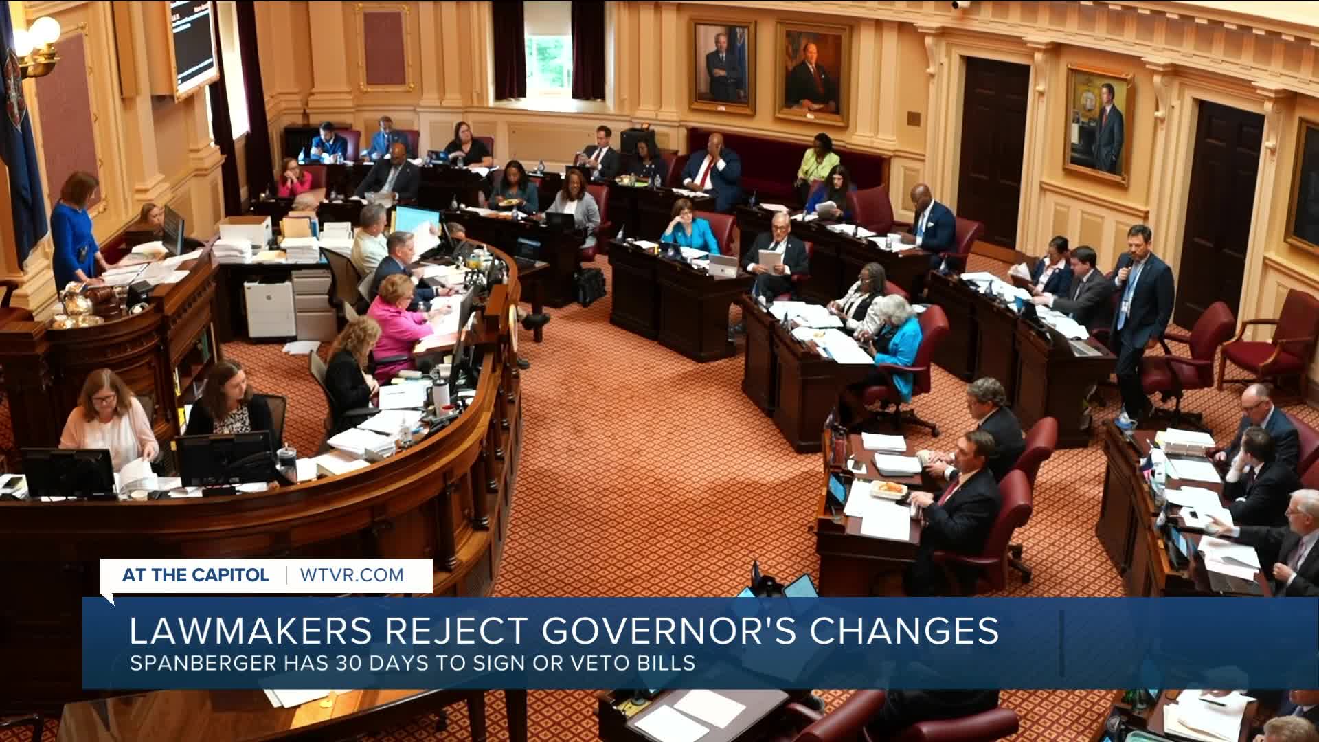 RICHMOND, Va. — State lawmakers met in Richmond Wednesday for a reconvened session, pushing back against Gov. Abigail Spanberger by rejecting her proposed changes to several major bills.