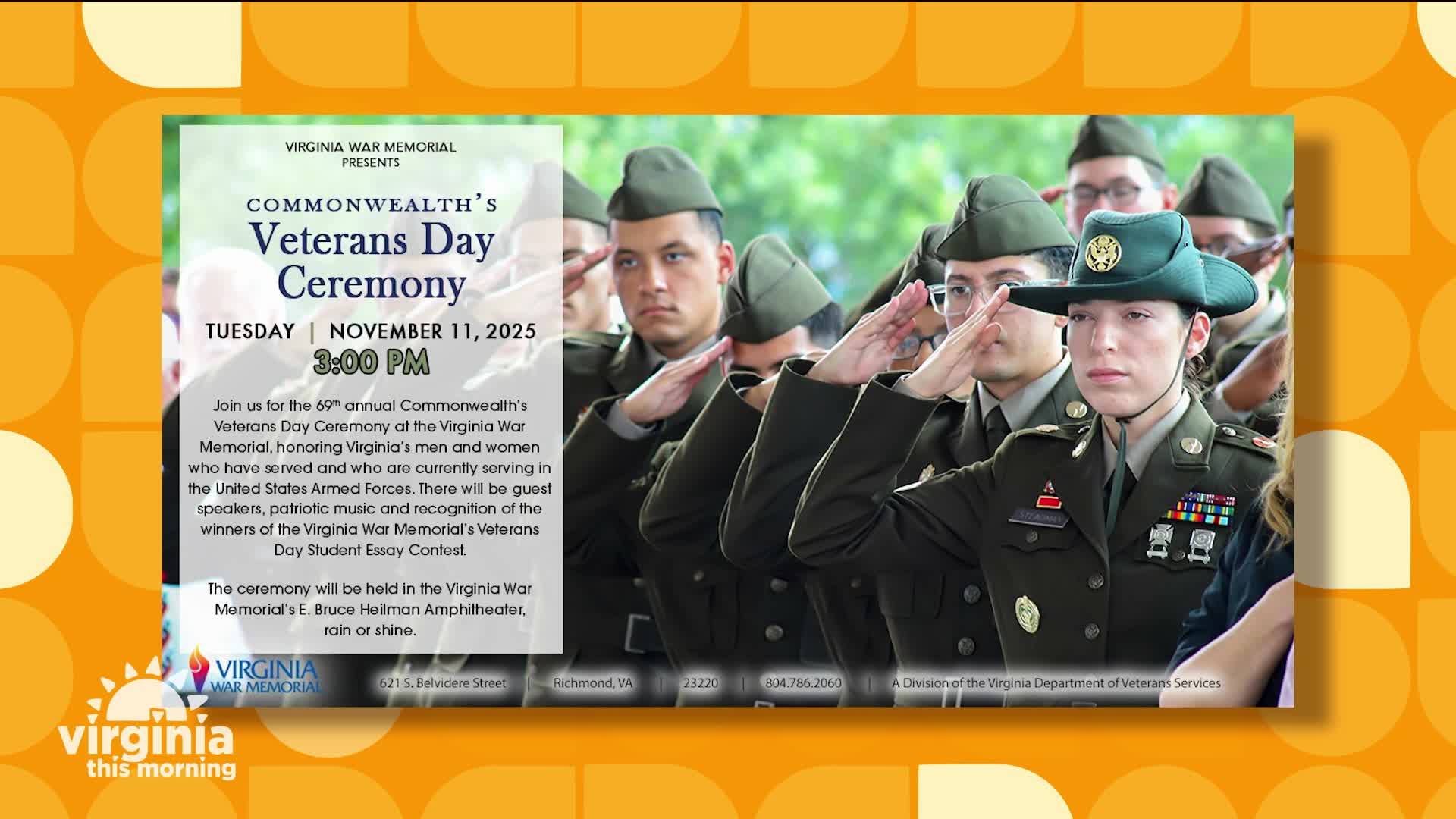RICHMOND, Va. -- The 69th Annual Commonwealth’s Day Ceremony is happening Tuesday, November 11 at 3pm at the Virginia War Memorial in Richmond.