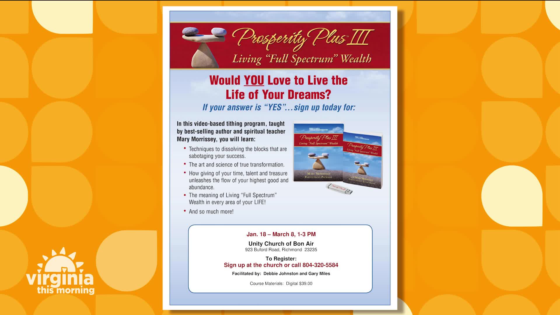 RICHMOND, Va. -- Check out the series January 18th through March 8th from 1pm-3pm at Unity Church Bon Air. Register by calling 804-320-5584.