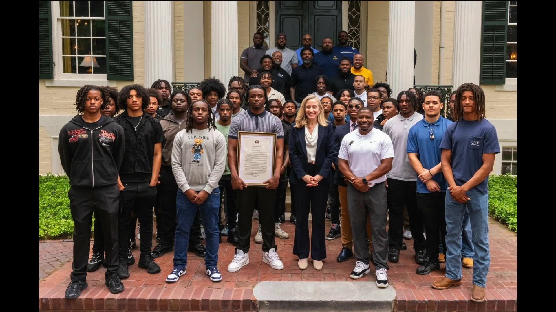 The Petersburg boys basketball team and the Varina Blue Devils football team met with Gov. Spanberger to celebrate their recent titles. Both teams stopped by the governor's mansion and received proclamations from the General Assembly.