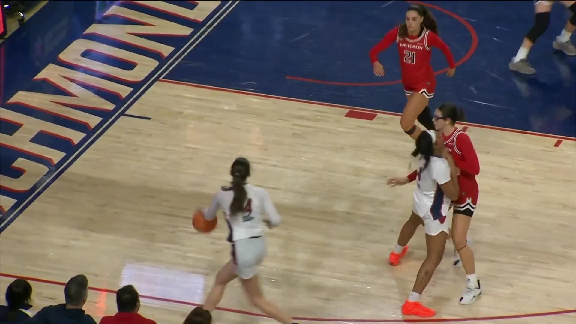 The victory extended Richmond's conference home winning streak to 27 straight games and handed Davidson their first league loss of the season.