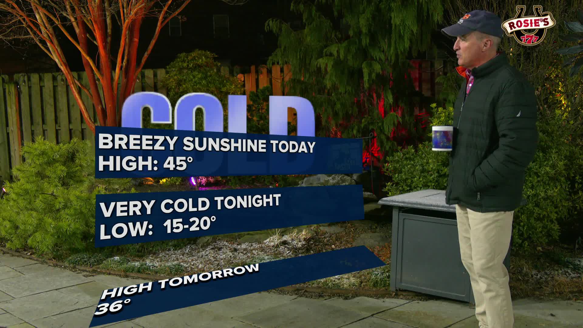 RICHMOND, Va. -- There will be icy spots early Monday morning, with cool sunshine and highs in the mid 40s for the remainder of the day.