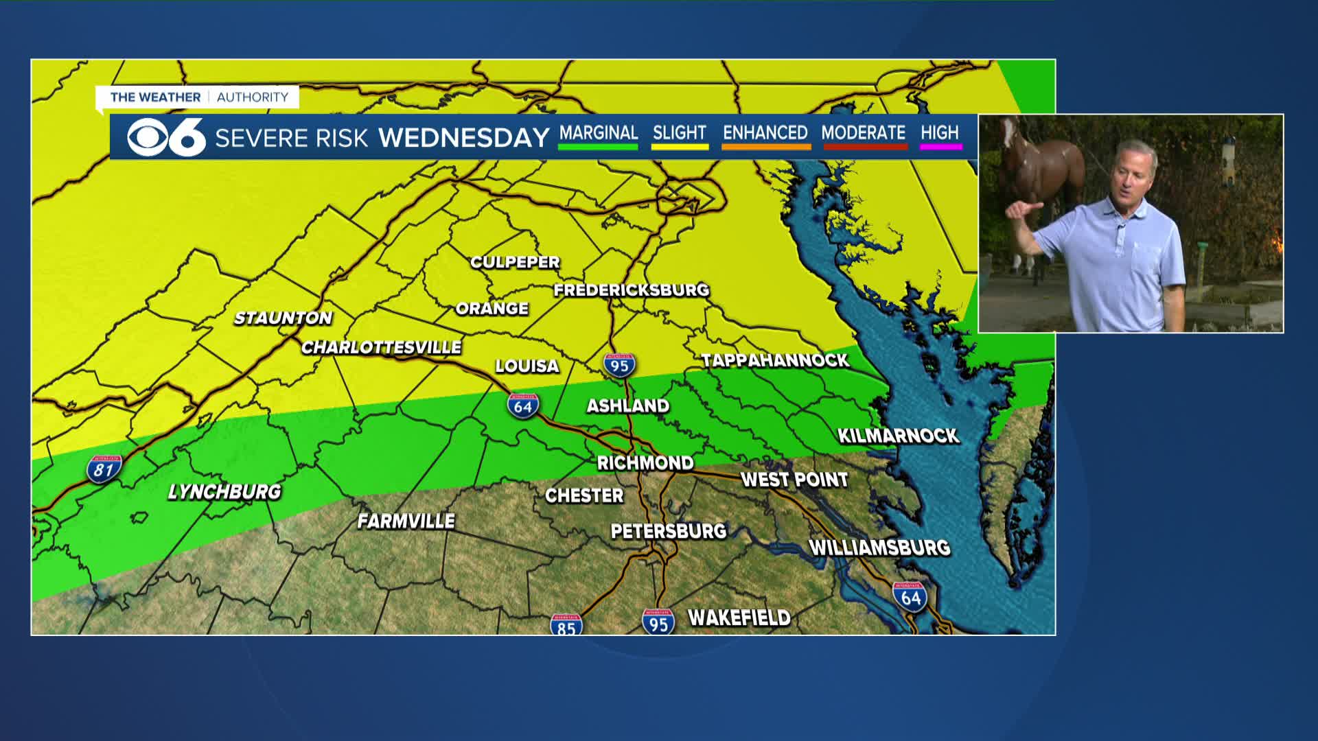 RICHMOND, Va. -- Wednesday will be partly cloudy and continued very warm. Highs will reach the mid to upper 80s.