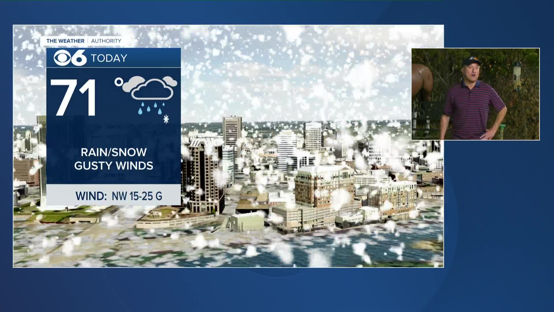 There will be a batch of rain near and behind the front for the morning hours. Rain will mix with wet flakes around noon, with a few hours of snow showers in the afternoon.