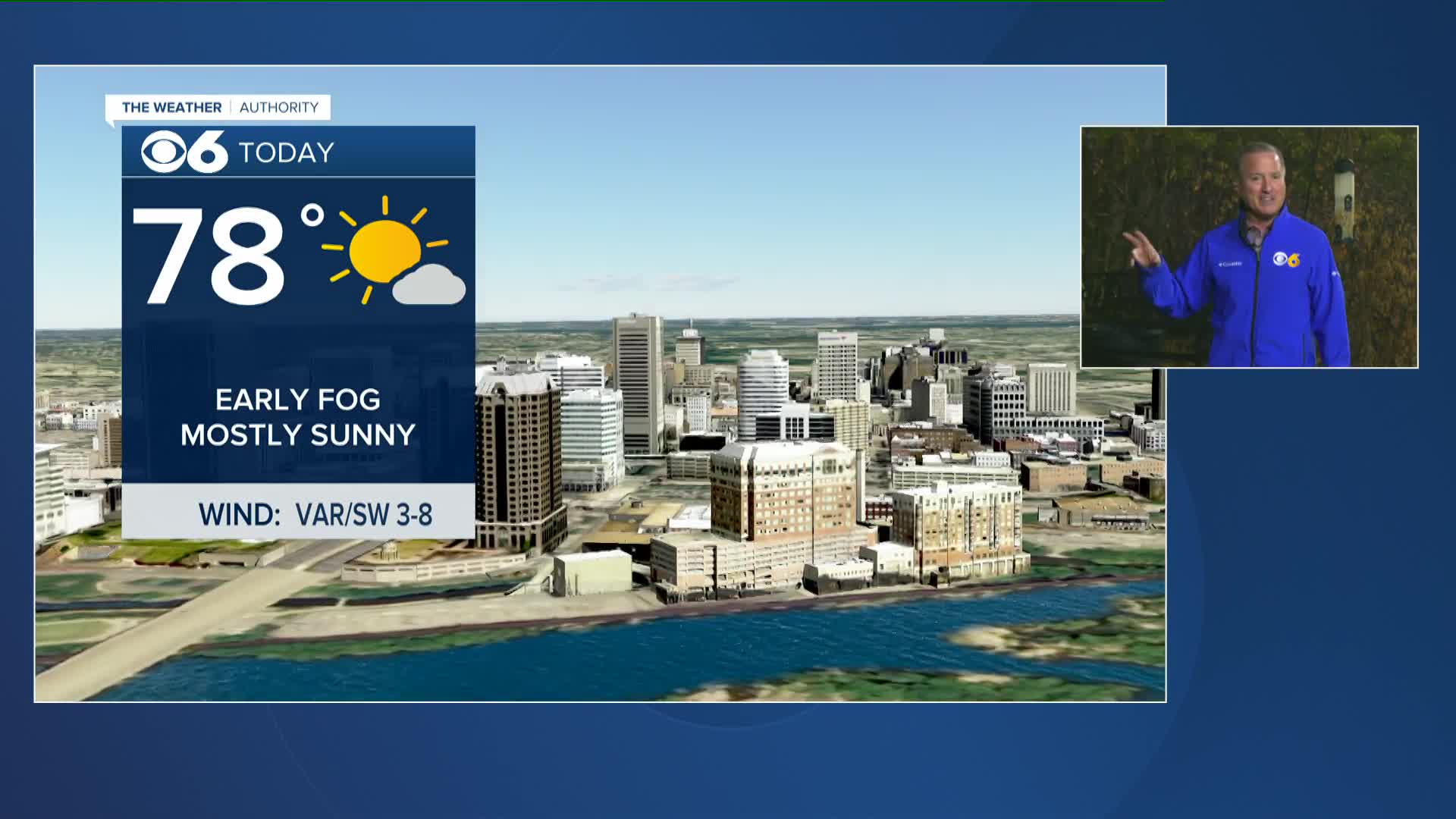 RICHMOND, Va. -- After morning fog, Monday will be mostly sunny, with afternoon highs in the mid to upper 70s.