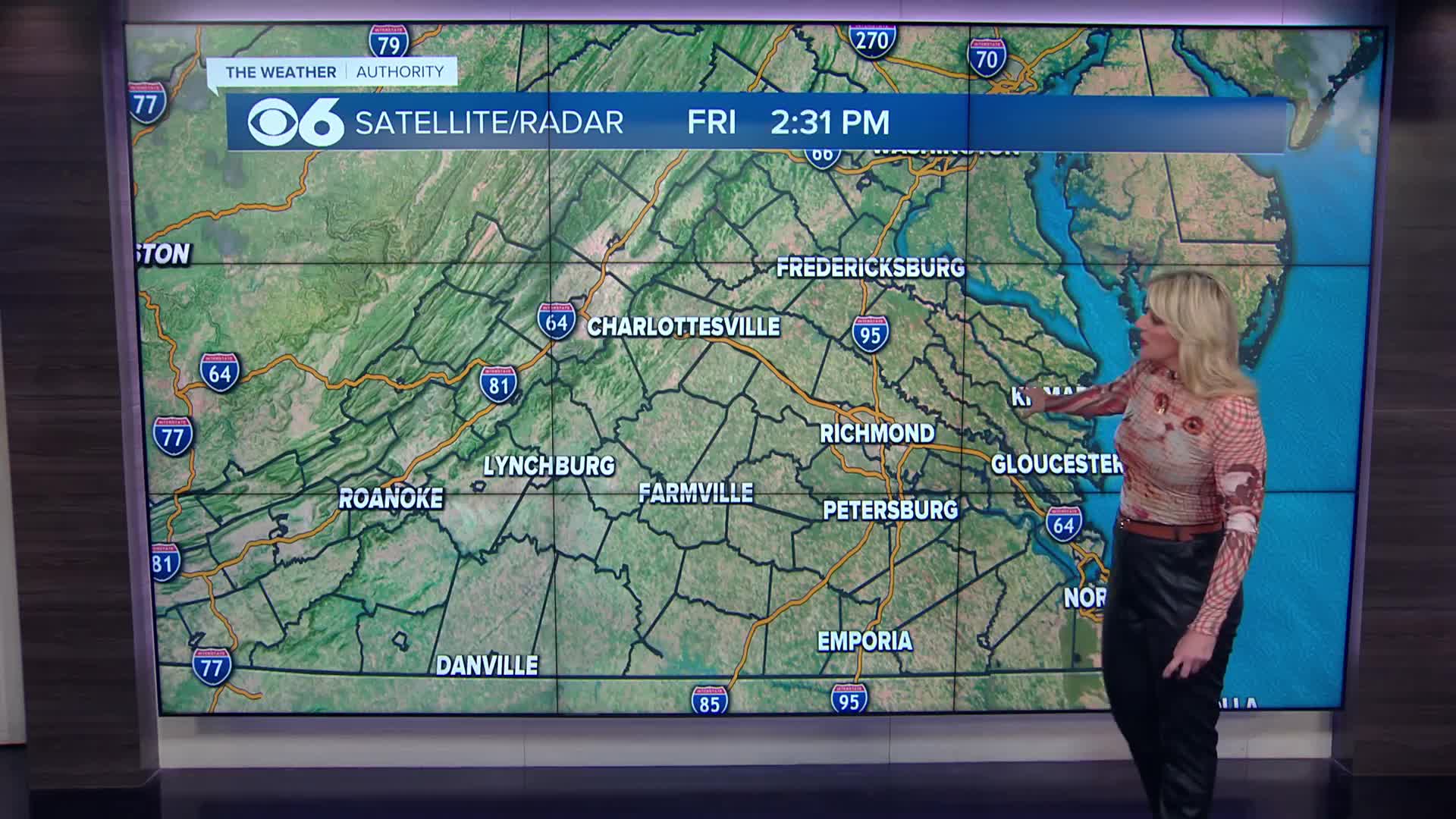 RICHMOND, Va. -- Tonight won't be quite as cold with lows in the low to mid 40s with a few more clouds overhead.