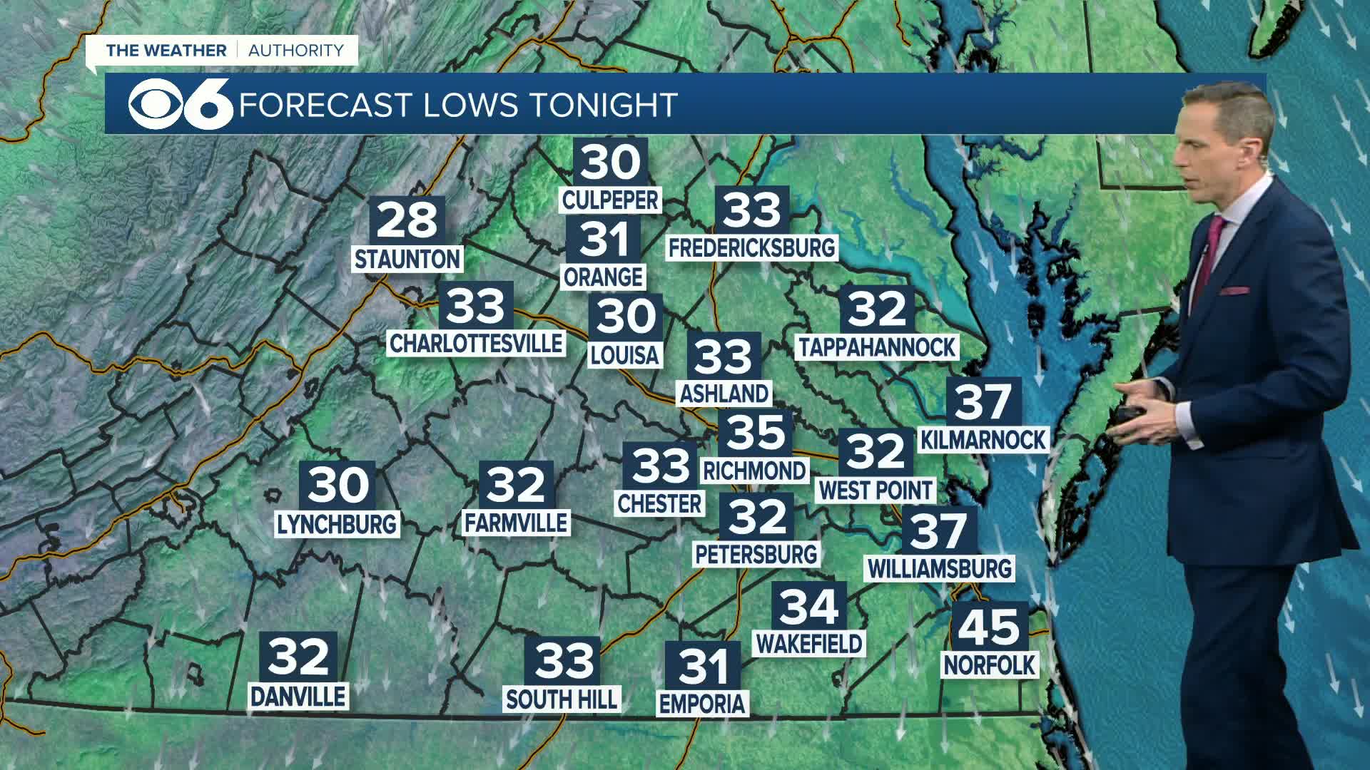 RICHMOND, Va. -- Today will be sunny and not as breezy with highs in the low to mid 60s.